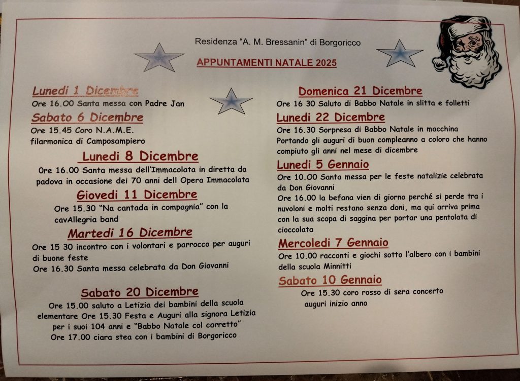 Ore 15.00 saluto a Letizia dei bambini della scuola elementare Ore 15.30 Festa e Auguri alla signora Letizia per i suoi 104 anni e “Babbo Natale col carretto”