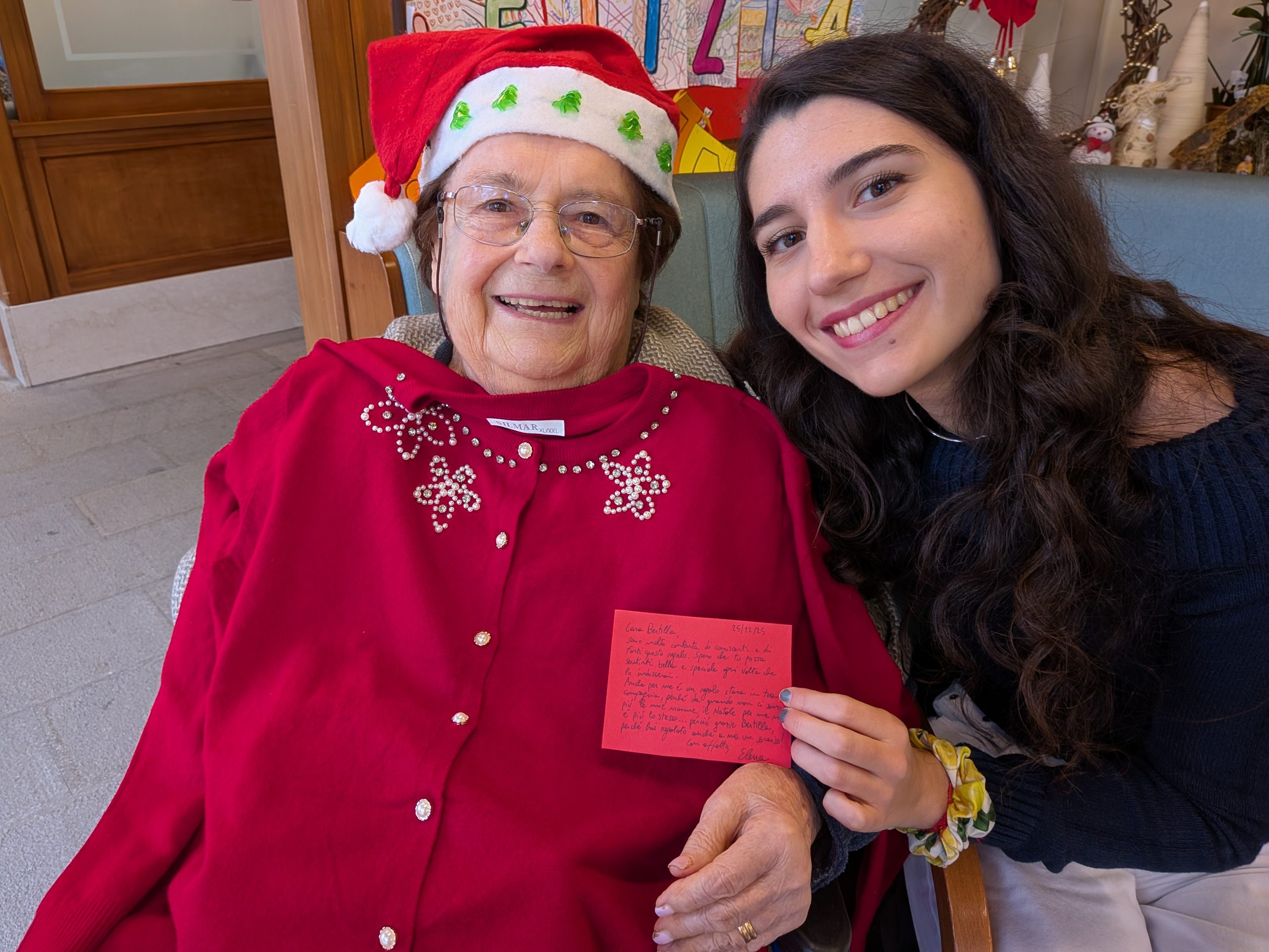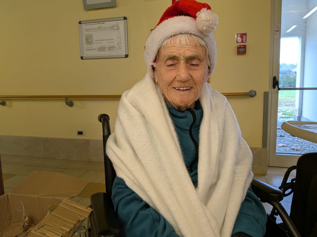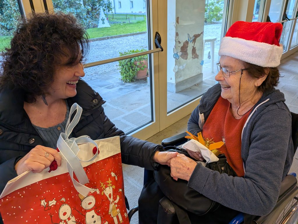 Quest’anno come Residenza abbiamo voluto partecipare all’iniziativa “Nipoti di Babbo Natale” durante il periodo natalizio, appena passato. Alcuni ospiti hanno espresso dei desideri su possibili regali da ricevere, sono stati dunque presi i contatti con l’Associazione Un Sorriso in Più che ci ha messo in contatto con delle persone esterne, non parenti dei residenti ma volontari che hanno dato la loro disponibilità per questo progetto, che hanno realizzato il desiderio espresso venendo in residenza con l’inaspettato regalo e trascorrendo un po’ del loro tempo con i nostri anziani. Ringraziamo Isabel di Genova, Arianna di Padova, Elena di Noventa e Paola di Vigonza per aver dato la possibilità alle persone residenti non solo di soddisfare il loro desiderio ma anche di conoscersi e passare del tempo insieme raccontandosi. Tutto questo offre a chi dona una gioia e gratificazione per la persona anziana e a quest’ultima la felicità di essere ascoltati e percepiti da persone estranee ma che danno valore all’anziano e una maggiore importanza e percezione del sè.