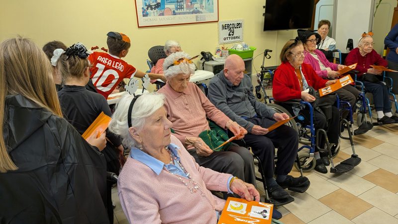 Borgoricco, 4 novembre 2025 Gli ospiti anziani di Villa Bressanin e i bambini della scuola elementare T. Minniti della frazione Sant’Eufemia di Borgoricco hanno trascorso la vigilia della festività di Ogni Santi insieme, per scambiarsi i migliori auguri sia in riferimento a tale festività che per la commemorazione dei defunti; questa ultima ricorrenza oggi influenzata